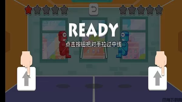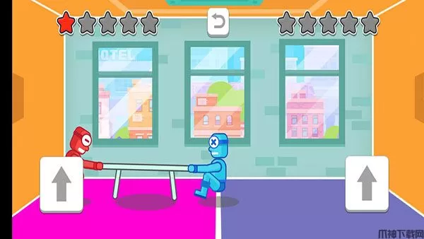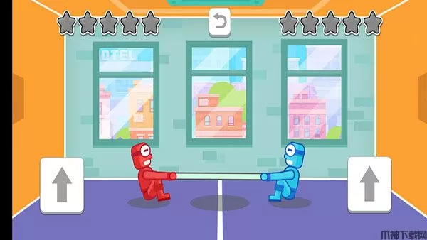 双人口袋大作战是一个简单有趣的对抗游戏。是的,你别笑,尽管它看起来很滑稽,但这真的是对抗游戏。游戏里有一个蓝色小人和一个红色小人,这种组合是经典而传统的对抗角色配对,所以接下来要做什么你懂得。你需要做的事情就是控制其中一个小人,然后将对方拉过白线。谁被拉过白线,谁就将失败,这很简单。