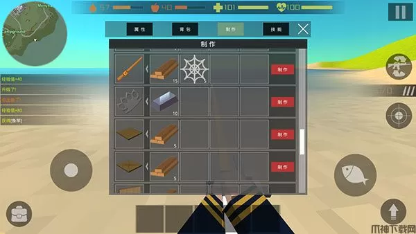 分解物品获得材料,制作工具武器和其他的赖以生存的用品,使用鱼竿和鱼饵钓鱼。
