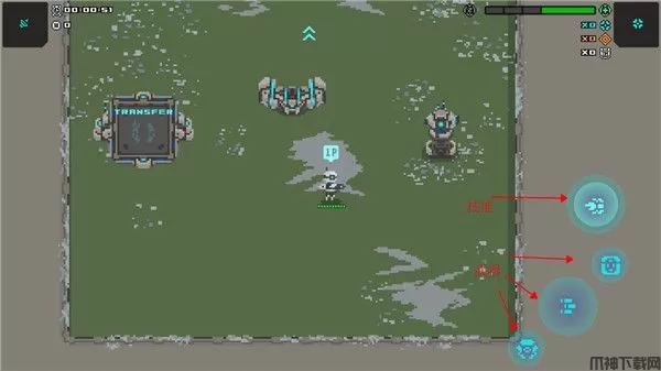 1、开始游戏中,拖动屏幕任意空白地方就可以控制方向,右边分为技能和武器。