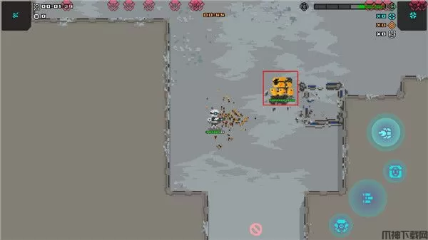 3、面对敌人你需要用尽各种办法击败它,不过要注意躲避它的高级,击破地图上的设施可以获得一些货币或者回血道具,千万不要错过哦。