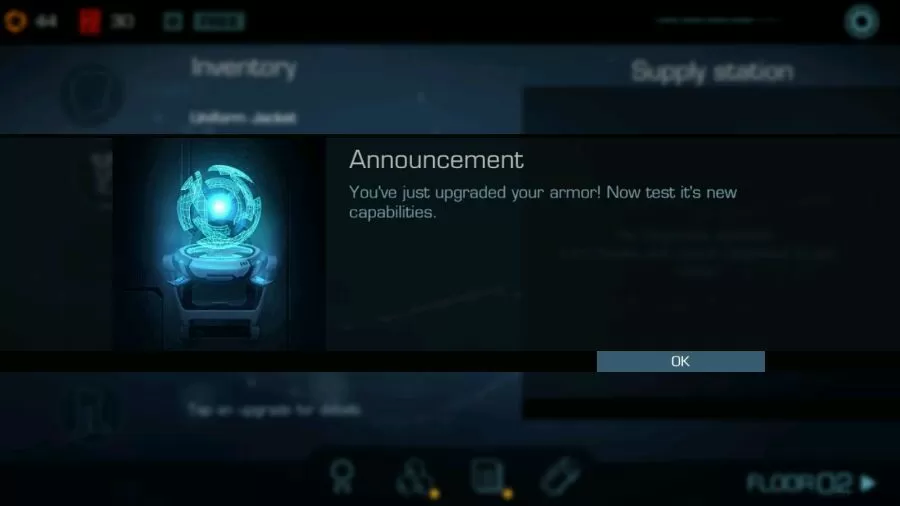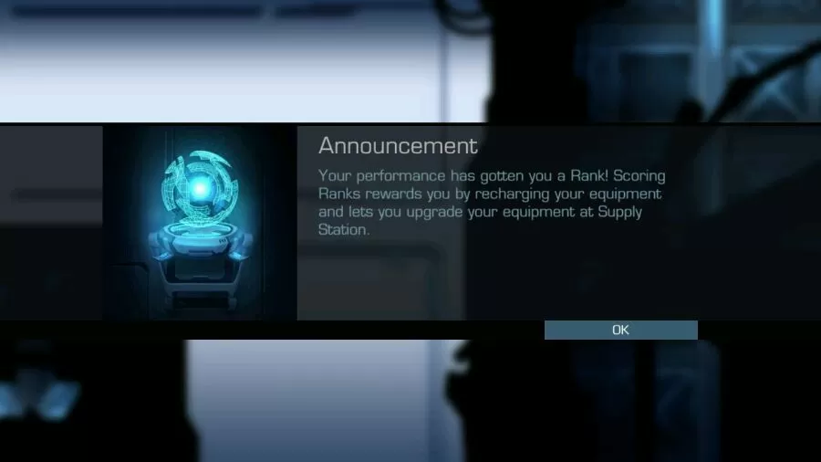 您的表现提升了你的评级!提升评级会提供奖励诸如给您的装甲补给(比如说给制服外套增加一次抗镭射的机会)和提供给您升级组件以便在补给站升级装甲。