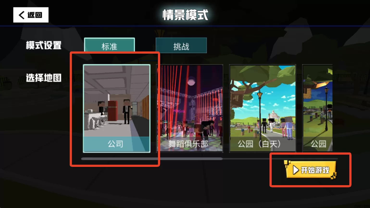 1、首先我们先随便进入一个地图,这里我们进入情景模式的公司地图,点击开始游戏。
