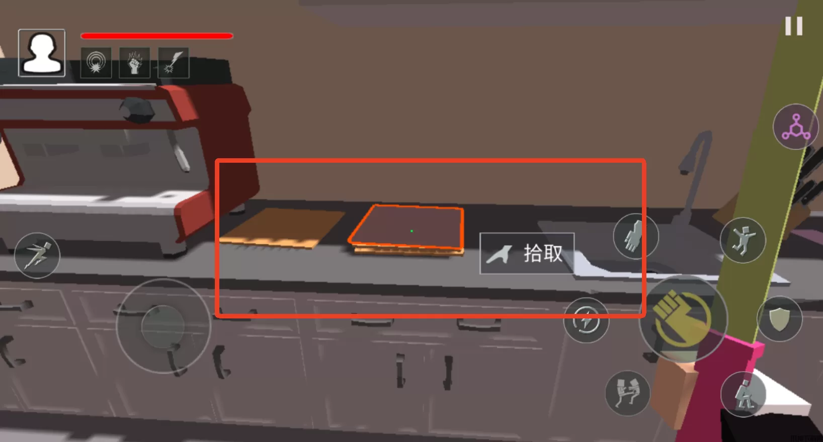 5、这边厨房桌子上的菜板也可以拾取。