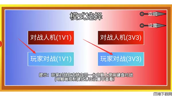 2、然后根据自己的需要选择对战模式,是“1v1"还是“3v3”。