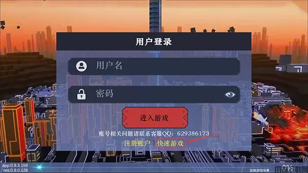 1、首先我们进入机甲模拟器官方正版游戏后,点击下面的快速游戏按钮进入。