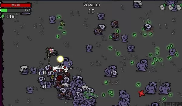 2、收集材料快速获得经验,并在一波又一波的敌人到来间隙中在商店策略购买道具。