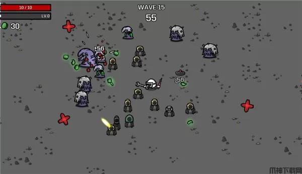 总共20波敌人,每一波时间从20秒逐渐增加到90秒,结束后会开启商店,商店可以购买道具和武器,也可以消耗材料来刷新。