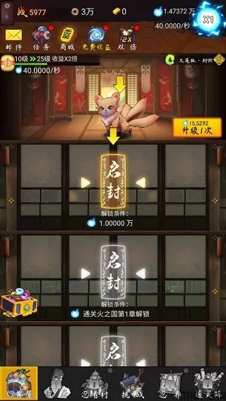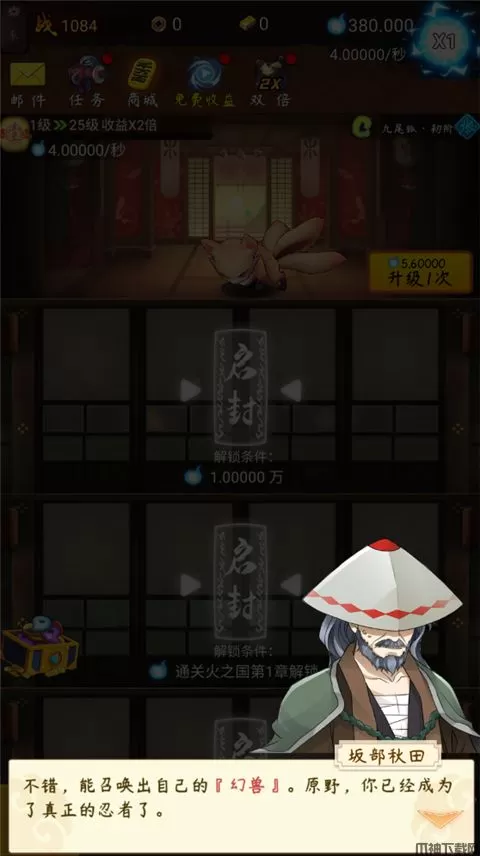 3、一旦忍者变得足够强大,就能通灵更多的幻兽,为己作战!解锁幻兽的方式需要足够的查克拉,待条件满足时,就能点击启封,开始召唤新的幻兽。往复循环,后期你便可凭借这些强大的幻兽完成忍者真理的探索之旅!