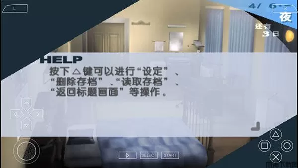 6、按下△键可以进行“设定”、“删除存档”、“读取存档”、“返回标题画面”等操作。