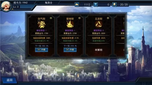 3、点击技能,可以升级技能,让游戏中更好发挥;