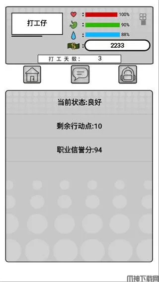 并且我是一个打工仔游戏手机版采用灰白画面设计,超简约的游戏场景,让玩家在这里将体验到最轻松有趣的文字剧情玩法,帮助你打发时间放松心情。有感兴趣的玩家就快来下载试试吧!