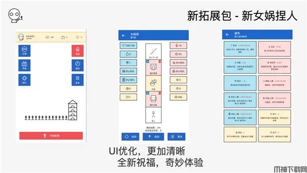 2、手艺:在女娲塔中,击败野怪会增加女娲的经验值,使用经验值提高手艺可以使女娲捏出更强的人!永久增加初始属性;