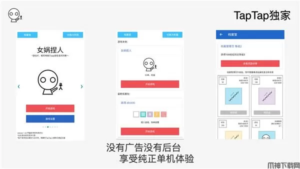 女娲捏人官方版是一款独立轻度Roguelike手游,游戏以中国的神话女娲造人为主题,采用爬塔玩法,玩家将作为女娲捏出来的小人从第一层开始向上进发,需要击败每一层里三个房间中的所有怪物和Boss。在爬塔过程中,玩家会遇到出售祝福和属性、能恢复生命的篝火等道具的商店,使用这些道具能够延长生存时间,爬上更高的塔。