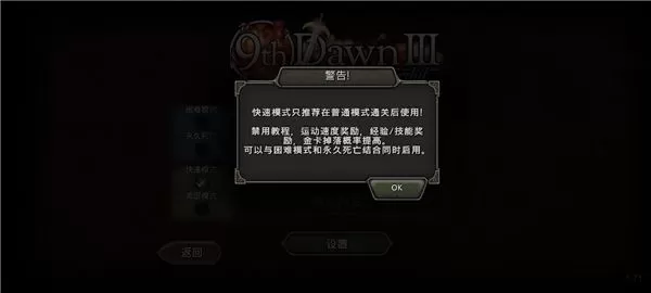 快速模式只推荐在普通模式通关后使用!禁用教程,运动速度奖励,经验/技能奖励,金卡掉落概率提高。可以与困难模式和永久死亡结合同时后用。