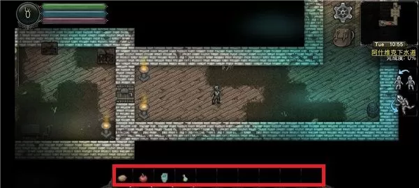 7、下方是物品栏,可以放置食物以及武器,不同的食物可以回复体力;
