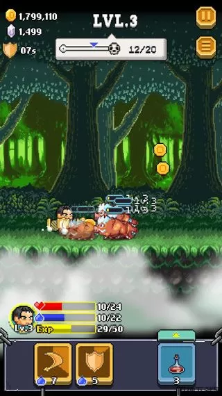 我们了解完主页面够小编为大家带来实战解说。在实战中我们会发现上方有个骷髅头的标志,这样提醒我们怪物总攻击次数,当我们完成上方怪物进攻次数之后我们就会迎来Boss的挑战,当我们挑战成功后会获得击杀Boss奖励的。在下方我们可以看到人物角色的状态栏的,其中红色为角色的血量,蓝色为法力值,下面黄色为升级所需要的经验值。最下方两个框架里面的就是技能,这可以在我们遇到大批怪物时可以使用技能对怪物们造成致命一击,不过每次使用一次技能后会造成我们法力值的损失,所以我们需要时刻注意血量与法力值的减少,在需要的时候点击技能栏旁边的药物栏进行补充,为我们在后面的战斗中提供保障。