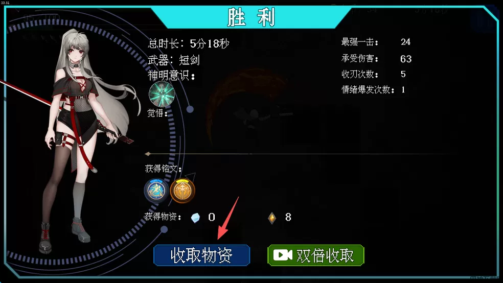 8、完成干卡后,点击屏幕下方的“收取意识”,完成关卡。