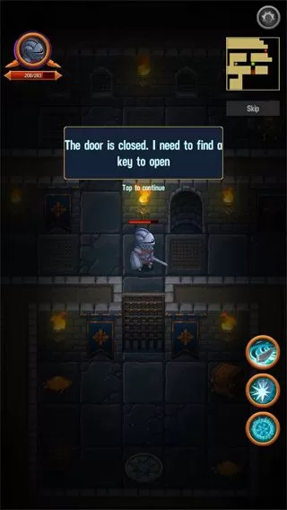 地牢英雄时代官方版(Dungeon Age of Heroes)是一款集RPG、Roguelikes、地牢、冒险、闯关等多个游戏元素的冒险探索游戏。玩家在这里扮演的是一个拯救王国的英雄,你要带领一群世界上最好最优秀的英雄去战斗,带领他们穿越地牢、森林、城市等,面对凶险的敌人,不要掉以轻心。带领你的军队完成任务,寻找宝藏,最终走向辉煌。地牢英雄时代游戏可玩性非常高,精心设计的游戏任务、商人以及地牢等特色系统让玩家们应接不暇,玩家能通过冒险战斗当中的资源来进行强化自身装备,亦或者是培养你的英雄,进行合理的属性加点分配。即便你是新手玩家也不要担心玩不来,进入游戏就会有新手提示帮助你快速上手。地牢英雄时代玩法很简单,直接点击地上的方砖就可以走到那个位置,遇到了阻挡前进的敌人不断的点击就可以进攻,击败骷髅可能会获得红色药水,红色药水可以帮你恢复生命值;前进过程中遇到的金币也不要忘记拾取,可以加速你的升级速度。