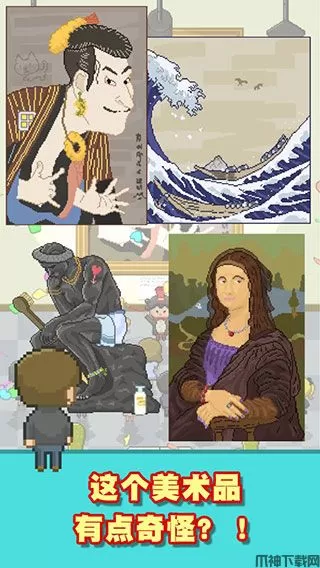 口袋美术馆最新版是一款趣味休闲经营类寻物游戏,在这里,玩家将化身为博物馆修复员,你需要在进入博物馆后,修复那些被破坏的藏品。像素风的人物设计,逼真的游戏场景,在搭配上合适的背景音乐与音效,让你可以沉浸式体验到修复名画的快乐。口袋美术馆最新版在玩法上,将经营与找不同结合在一起,同时又在此基础上,增加了更加趣味的玩法,让玩家可以体验到别样的游戏乐趣。游戏操作简单,新手小白也能轻松上手,在这里,你需要对比上下的美术品,点击不同之处进行修复。还可以通过二指操作可放大或缩小美术品或者是点击客人,收集金币,在修复的同时赚取金币,所以大家还在等什么,感兴趣的小伙伴赶快来下载体验吧。