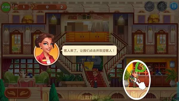 2、在酒店故事游戏中管理自己的团队。