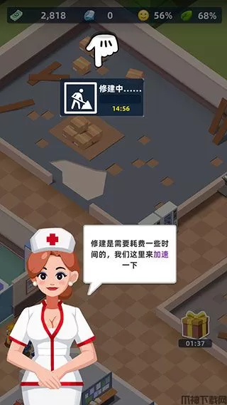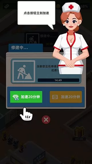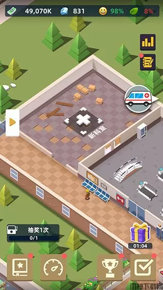 5、以轻松放置为主题的经营游戏,经营自己的医院,招聘了很多员工。