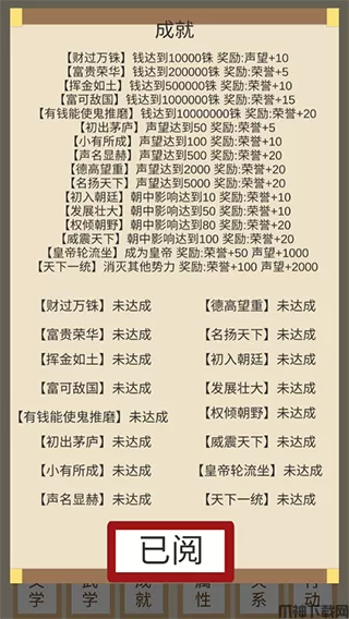影响力:每200声望提升1点影响力,100为上限,至上限可架空皇帝及改朝换代。