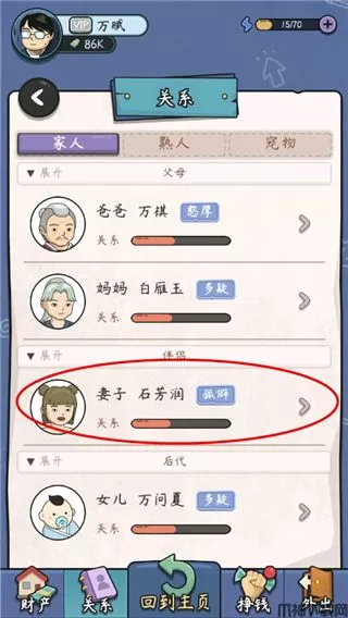 1、在主界面中依次点击“关系”、“妻子”;
