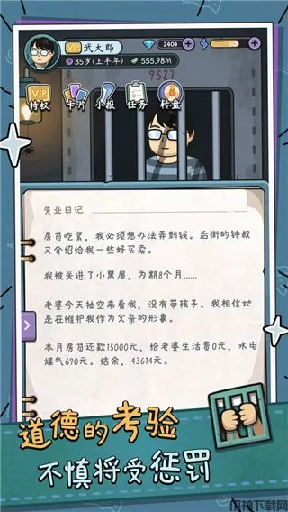 中年失业模拟器手机版是一款由同名PC游戏所改编而来的模拟类手游,且它采用的还是精致的漫画风,所以游戏不仅有着精美的卡通游戏画面和精简的文字类型,而且还有着极为丰富的模拟类玩法,比如:送外卖、搬砖、贷款、社交等等,通过其贴合现实的玩法相信可以给予玩家们别样的模拟体验。