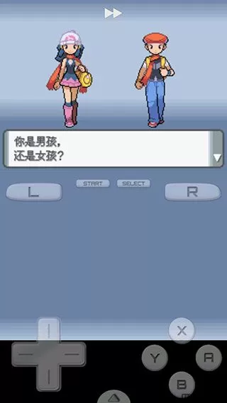 2、点击触摸屏上的精灵球,选择男生或者女生作为自己操纵的主角,而未被选择的一方将成为主角的对手。