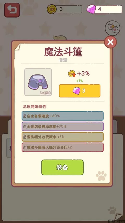7、服装道具可以用来给猫咪店员进行装备。