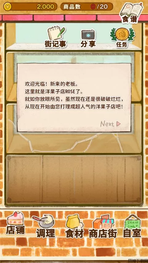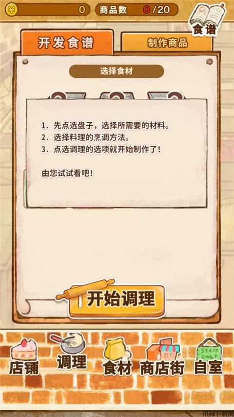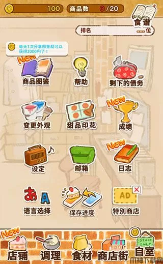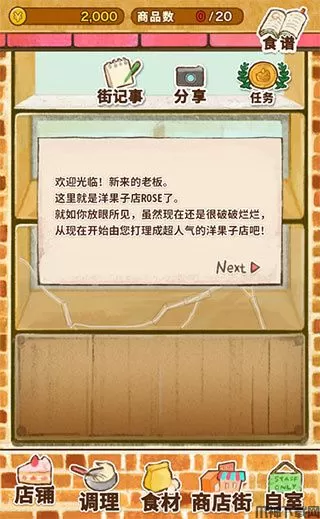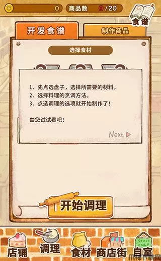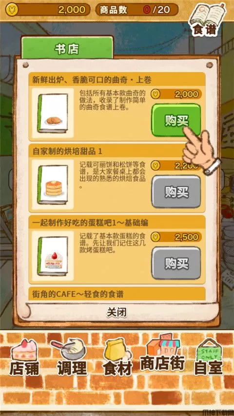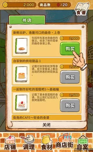 3、点击底部的【商业街】可以采购各种食谱来制作美味的甜品。