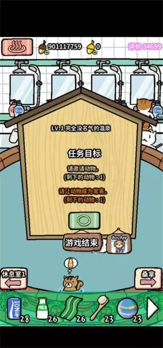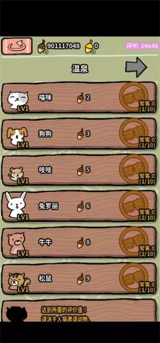 4、温泉的评价越高,能邀请的动物朋友就会越多,请招待所有动物朋友吧!