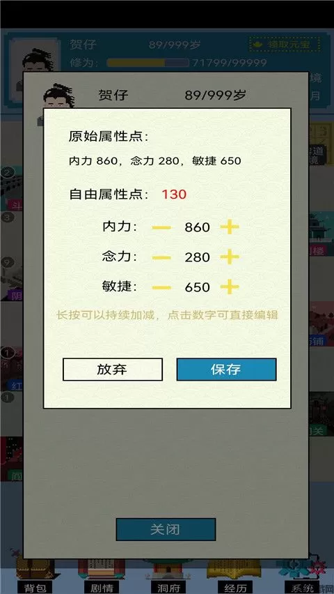 步骤:移魂咒夺舍一个低境界(有些人的初始经验非常高直接99999,夺舍这种人最省事儿,不用修炼),然后利用你的资源给他升级,升级后不要加点,夺舍回来自由属性点就有了。理论上可以无限刷。