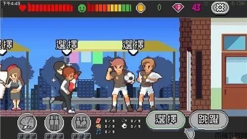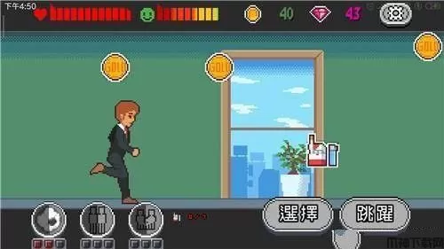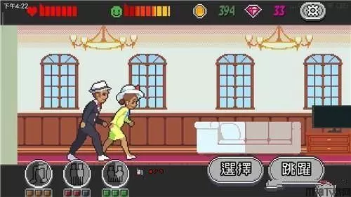 1、游戏的玩法很简单,就是横版跑酷的玩法。在游戏的右边有两个按键进行操作,一个是选择键,当你遇到某些特殊事件时,比如选择兴趣,选择对象、买车买房等等,这将影响你后面游戏的结局