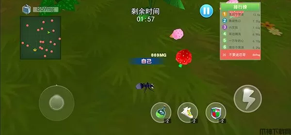 4、你需要在规定时间内不断的进行吞噬水果以及其他蚂蚁,来让自己变得更加强大;