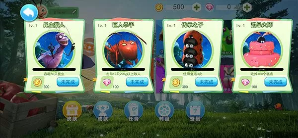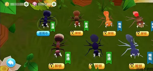 1、使用游戏中获得的金币和钻石升级解锁新角色,包括各种独特的蚂蚁和昆虫;