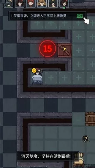 1、宿舍选择:在游戏里面宿舍的选择很重要,选择宿舍注意2点,一个是门要在上方的位置,二尽量选择较远的位置,选择门在上方的位置是因为猛鬼在攻击的时候可以清晰的看到门的血量,如果门在下方的话可能会和猛鬼并合在一起,这样就无法看到门的血量了,偏远位置可以让猛鬼不会第一时间走到玩家这里进行攻击,优先攻击其他队友的房间。