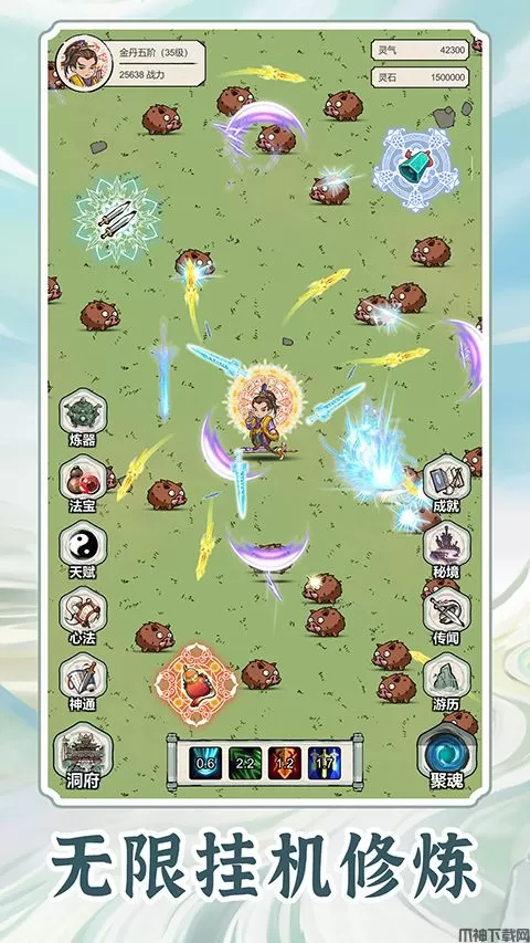 无限流修炼模拟器是一款充满修仙元素的2D卡通风格的角色扮演战斗手游,在这里可以自由选择喜欢的修炼流派进行历练,凭实力获得神器、绝学和其他机遇。玩家可以根据个人喜好来提升角色的能力,通过完成各种任务和挑战,角色的等级不断提升,遇到的神器和绝就越高级。在无限流修炼模拟器游戏中,角色最多可以配置四种神通,同时还可以设置四种备选神通,这让玩家在面对不同敌人时能够灵活调整战斗策略。这种个性化的修炼,让每位玩家的游戏体验都独一无二!