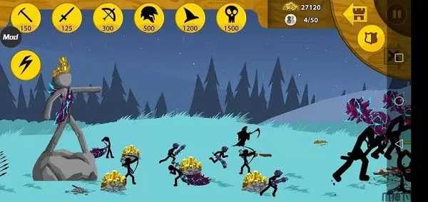 火柴人战争荣耀最新版是一款策略战争手游,玩家需要控制由火柴人组成的部队,组织火柴人开采黄金,学习剑术,摧毁敌人的雕像,并夺下所有领土!玩家需要拖拽火柴人进行挖矿、砍伐等工作,在与敌人交战时,需要根据场上局势及时生产更多的火柴人士兵,并指挥他们进攻,合理利用兵种和地形,灵活运用策略打败敌人。游戏内拥有经典战役、生存模式和比赛模式等玩法,不管是需要在无尽的死灵僵尸中生存玩法,还是与数十名Ai一同挑战玩法,都能让玩家感到游戏的无限乐趣。