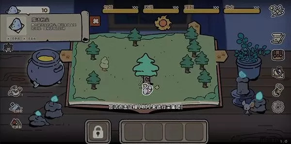 游戏中,物品的采集需要消耗魔法粉尘与理智值,当小猫持有魔法粉尘时,点击童话书上的建筑物(如树、花),就可以完成一次成功的采集啦!