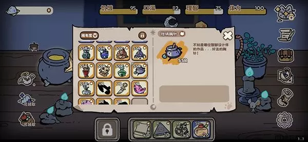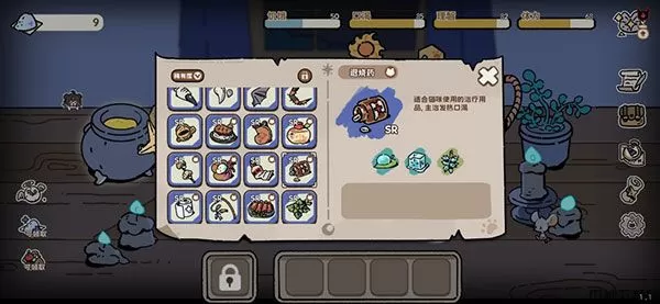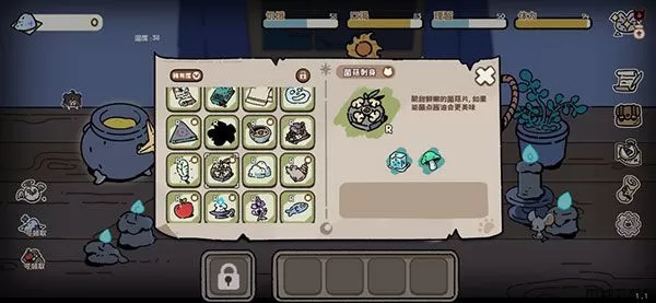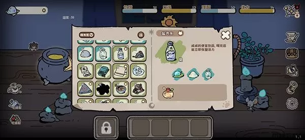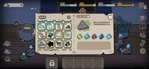 不过要留意的是,坩埚的合成虽然能够变废为宝,也能够让珍贵的物资瞬间消失掉。如果你对合成一筹莫展的时候,不妨点击屏幕右边的“图鉴”按钮(第五个,那个小卷轴!)。既能够看到已合成物品的公式,也能够在物品明细中看到物品合成的逻辑。多多观察,找到正确的配方吧!