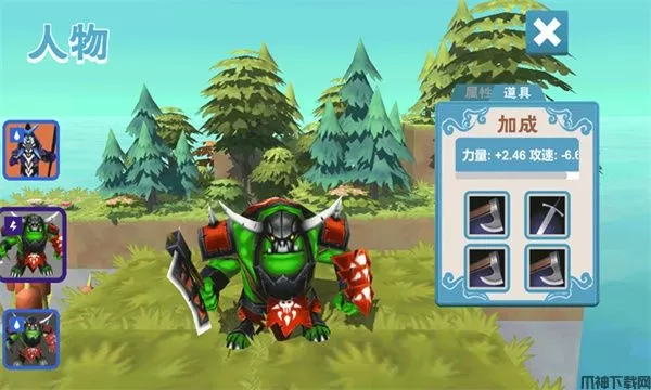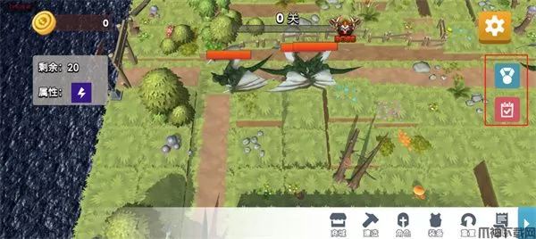 游戏玩法简单,玩家可以在游戏左边查看关卡中怪物的数量和怪物属性,游戏右边玩家还可以点击签到和奖励来领取奖励,点击建造还可以放置角色,击败怪物还会获得一定的金币奖励,玩家可以利用这些金币来购买一些角色和装备,玩家可以点击道具下的“?”,再选择一个道具点击装备来装备武器,让角色更多更加的强大,帮助玩家更好的捍卫自己的领土。