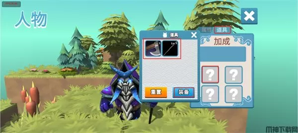 8、玩家可以点击道具下的“?”,再选择一个道具点击装备来装备武器;