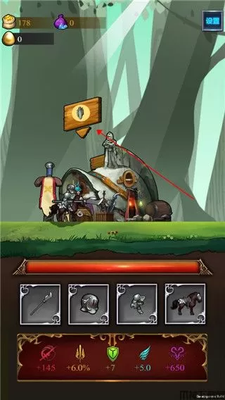 4、来到商店门口即可为自己恢复血量,点击即可进入装备界面,拖动相同等级的装备即可将它们进行合成。