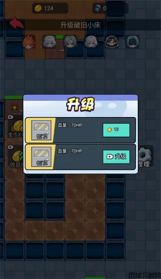 4、随后开始赚钱,用钱来升级门和建造防御炮台等各种道具。