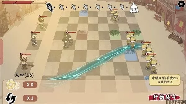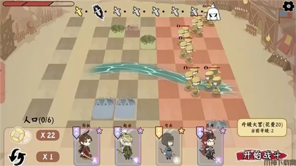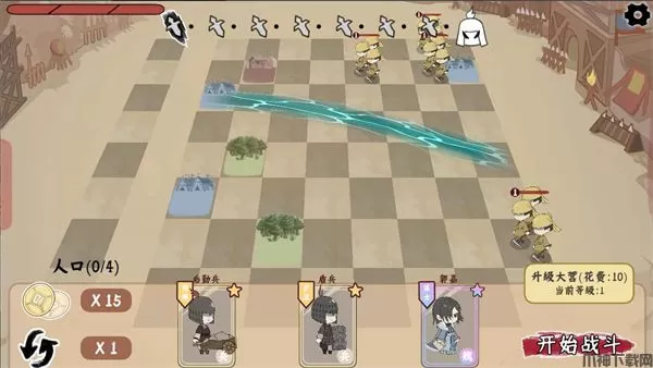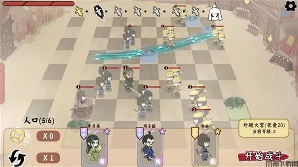 3、将小兵放在棋盘上后可以点击开始战斗进行闯关,棋子会自动攻击敌人,击败所有敌人后就可以通关。