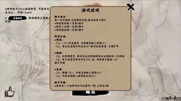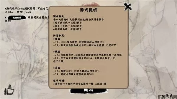 2、进入关卡后可以点击下方的卡牌来消耗铜币进行购买,每一关开始时(无论胜利失败)都会获得十铜币,购买武将统一花费3铜币,购买小兵统一花费2铜币,购买道具统一花费3铜币。