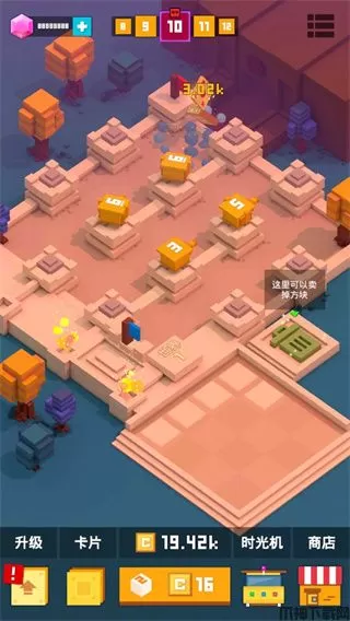 另外升级方块建造器能够提高购买到方块等级,黄色水晶能够加强塔防方块伤害。