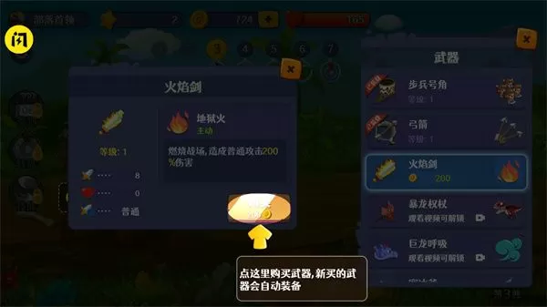 3、如果你有足够的金币,你可以购买更强大的武器和更猛烈的攻击;