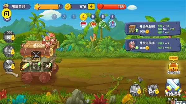 防御塔大作战是一款非常有趣的塔防战斗游戏,在画面上采用的是精致卡通风格,而玩法上主要是以塔防闯关为主,游戏中玩家将扮演的是一个部落的酋长,由于你所在的部落是刚建立的新部落,可是这个时候外族已经入浸到来了,那么你作为一个酋长所以需要开始阻挡它们的入侵。游戏刚开始时我们只有两个武器,就是号角和弓箭,号角是召唤战士的,和弓箭就不用多说了就是射击入侵者,那么当我们全部放出去之后我们还要等武器冷却才能再次放出,所以我们要找好合适的时机来放武器。随着防御塔大作战游戏的进展,到了后面我们也会解锁更多的武器,那么游戏采用的是关卡模式,这也就意味着越到后面也就越难,那我们的武器肯定也要进行升级,当然要升级也就需要金币,玩家可以在战斗中获胜来获取金币。到了后面还会有强大的boss等你来挑战,击败boss也会有丰厚的游戏奖励可以获取,喜欢的朋友不要错过哦!